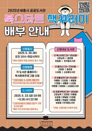 세종시 공공도서관이 아이들의 생애 첫 독서 경험을 지원하는 ‘북스타트’ 독서운동을 본격 추진한다.북스타트는 아기와 부모가 함께 책을 읽는 문화를 확산하기 위한 독서 진흥 운동으로, 올해는 책꾸러미 배부와 북스타트 주간행사로 구성된다. 책꾸러미 배부 사업은 생애 초기부터 책 읽는 문화를 형성하기 위해 유아에게 그림책과 독서 가이드를 선물하는 프로그램이다.책꾸러미는 연령별로 △북스타트(0~3세) △플러스(3~5세) △보물상자(5~7세) △초등저학년(8~10세)으로 구분해 아동 성장 단계에 맞춘 도서와 가이드북, 책가방 등을 구성했으며,