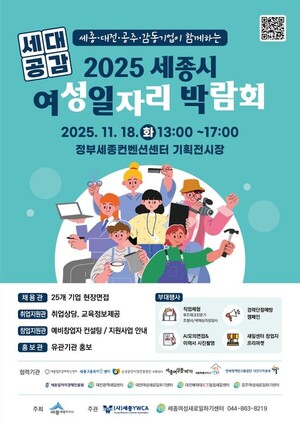 세종시가 18일 정부세종컨벤션센터 기획전시장에서 여성 구직자와 예비 창업자를 위한 여성일자리 박람회를 연다. 시가 주최하고 세종여성새로일하기센터가 주관하는 이번 행사는 경력단절 여성 등 여성 인력의 취업과 창업을 동시에 지원하고, 지역 기업의 인재 수요를 연결하기 위해 마련됐다.박람회에는 세종과 대전, 충남 공주에 있는 25곳 기업이 참여해 현장 채용관을 운영한다. 구직 여성들은 채용 상담과 면접을 한 자리에서 진행할 수 있으며, 창업 준비 단계에 있는 시민을 위한 창업상담관과 구직상담관, 각종 일자리 정보를 안내하는 유관기관 홍보