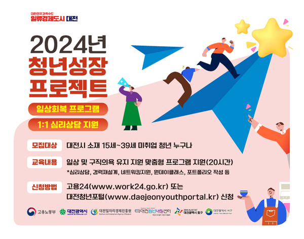 대전시가 취업에 어려움을 겪는 청년들을 위한 '청년성장프로젝트' 참여자를 모집한다고 밝혔다. 이 프로젝트는 청년들의 구직 의욕을 고취시키고 원활한 사회활동을 지원하기 위해 마련됐다. '청년성장프로젝트'는 '청년카페'와 '직장적응지원' 두 가지 사업으로 구성된다. '청년카페'는 15~39세 미취업 청년을 대상으로 7개 거점 공간에서 무료로 운영된다. 20시간의 맞춤형 프로그램을 통해 1:1 심리상담, 경력재설계, 청년네트워킹, 취업역량강화 등을 지원한다. '직장적응지원' 사업은 지역 중소·중견기업에 재직 중인 관리자와 채용 후 1년 이내 신입직원을 대상으로 한다. 협업 커뮤니케이션, 갑질예방, 온보딩프로그램 등의 내용으로 구성되며, 수료 후에는 지속적인 네트워킹 형성 지원 및 멘토링 관리도 제공한다. 청년성장프로젝트는 12월까지 진행되며, 참여를 희망하는 청년과 기업은 고용24 또는 대전청년포털 홈페이지를 통해 원하는 장소와 프로그램을 선택하여 신청할 수 있다. 자세한 사항은 대전시 홈페이지에 게시된 공지사항을 통해 확인할 수 있으며, 궁금한 사항은 대전시청 일자리경제정책과 또는 각 운영기관으로 문의하면 된다. 권경민 대전시 경제국장은 "대전 청년의 구직 단념을 예방하고 지역기업 내 청년 친화적 조직문화 조성을 적극 지원하겠다"고 밝혔다. 이번 프로젝트를 통해 대전시는 청년들의 일상 회복과 취업 준비, 그리고 기업의 청년 친화적 문화 조성에 기여할 것으로 기대된다. /이영준 기자