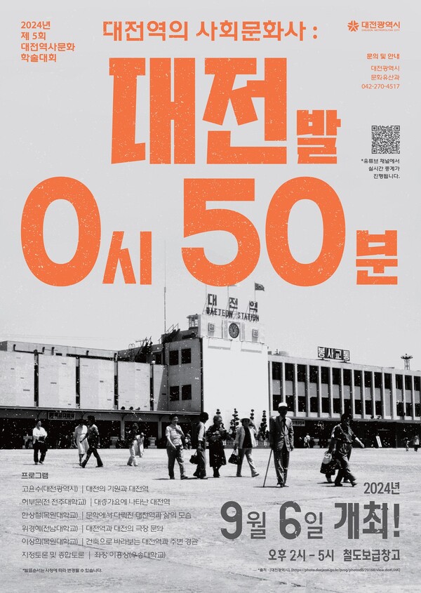 대전시는 대전역 설립 120주년을 기념하여 ‘대전역의 사회문화사: 대전발 0시 50분’을 주제로 제5회 대전역사문화 학술대회를 개최한다. 이번 학술대회는 9월 6일 신안동 철도보급창고에서 열리며, 대전역이 대전의 성장과 문화 형성에 미친 영향을 다각도로 조명할 예정이다. 철도보급창고는 최근 이전된 국가등록유산으로, 이번 행사를 통해 시민들에게 처음 공개된다. 학술대회의 주요 주제는 대전역이 대전의 도시 발전, 건축, 문학, 영화, 대중가요 등 다양한 분야에서 어떤 영향을 미쳤는지를 분석하는 것이다. 이를 통해 대전역이 단순한 교통시설을 넘어 대전의 사회문화사에서 중요한 역할을 했음을 재조명하고자 한다. 또한 대전역을 중심으로 한 다양한 이야기를 발굴하고 공유할 수 있는 기회를 제공한다. 이번 학술대회는 도시, 건축, 문학, 영화, 대중가요 등 다양한 분야의 전문가들이 참여하여 심도 있는 논의를 펼친다. 유튜브 생중계를 통해 누구나 참여할 수 있으며, 이를 통해 대전역이 지역 사회와 문화 형성에 기여한 바를 새롭게 이해할 수 있는 기회를 마련한다. 대전역은 대전의 역사와 문화를 형성하는 데 중요한 역할을 해왔으며, 이번 학술대회를 통해 대전의 정체성을 확립하고 지역 문화를 발전시키는 데 기여할 것으로 기대된다. 또한 시민들의 역사 의식을 고취하고 지역에 대한 자긍심을 높이는 계기가 될 것이다. 대전역을 중심으로 한 다양한 문화 콘텐츠를 개발하는 데 활용될 수 있다는 점에서 이번 학술대회는 중요한 의미를 가진다. /이성재 기자