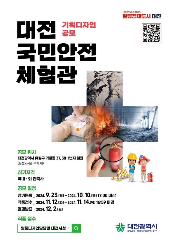 대전시는 중부권 재난안전 교육의 거점으로 활용될 대전국민안전체험관의 기획디자인 공모를 추진한다. 이번 공모는 대전시가 명품건축물 건립과 명품도시 조성을 목표로 진행 중인 ‘선 디자인 후 사업계획’ 방침의 일환으로, 혁신적이고 창의적인 디자인을 도출하는 데 목적이 있다. 공모 참여자는 중부권의 종합안전체험 문화공간으로서 대전의 특색을 반영하면서 기존 국민안전체험관과 차별화된 디자인을 제안해야 한다. 더불어 유성도서관 등 인근 건물들과의 조화를 고려한 설계도 요구된다. 공모 참가 자격은 국내외 건축가에 한하며, 참가 등록은 9월 23일부터 10월 10일까지 대전시 명품디자인담당관 홈페이지에서 가능하다. 작품 접수는 11월 14일까지 이뤄지며, 12월 2일 최종 결과가 발표될 예정이다. 심사위원회를 통해 5개 작품이 선정되며, 선정된 참가자에게는 상금이 지급된다. 이후 지명설계 공모를 통해 최종 당선작을 선정한 후 기본 및 실시설계용역을 추진할 계획이다. 이번 공모에서는 참가 건축사의 부담을 줄이기 위해 제출 자료를 간소화했으며, 설계도판 1장과 설계설명서 10장으로 제한된다. 이를 통해 국내외 다양한 건축가의 참여를 유도하고 우수한 디자인이 접수될 수 있도록 하려는 의도다. 공모와 관련된 세부 일정과 지침은 9월 20일부터 공모 홈페이지에서 확인할 수 있다. 대전시는 창의적이고 혁신적인 디자인이 나오기를 기대하고 있으며, 이를 통해 중부권 재난안전 교육의 핵심 시설로 자리 잡을 계획이다. /이성재 기자 이성재 기자 a1065@sejongilbo.co.kr 다른기사 보기 저작권자 © 세종일보 무단전재 및 재배포 금지 당신만 안 본 뉴스 한화 불꽃축제 30일 개최…대전시, 방문객 안전 관리 강화 주민이 채우는 폐교, 지역이 키우는 공간으로 만든다 [사설] 일할 세대가 떠난다 ‘APEC 2025 미래들의 수다’, 청년 시선으로 본 인구위기 어린이 환경교육, 뮤지컬로 배우는 탄소중립 외로움 대신 연결로… 청년 위한 온라인 상담 시범 운영 반복되는 SPC 사고… 노동부 "노동강도·건강영향 재진단 필요" 한화 불꽃축제 30일 개최…대전시, 방문객 안전 관리 강화 개의 댓글 회원로그인 작성자 비밀번호 댓글 내용입력 댓글 정렬 최신순 추천순 답글순 BEST댓글 BEST 댓글 답글과 추천수를 합산하여 자동으로 노출됩니다. 닫기 더보기 댓글삭제 삭제한 댓글은 다시 복구할 수 없습니다. 그래도 삭제하시겠습니까? 비밀번호 닫기 댓글수정 댓글 수정은 작성 후 1분내에만 가능합니다. 본문 / 400 비밀번호 닫기 내 댓글 모음 닫기 주요기사