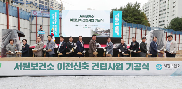 청주시가 서원보건소 이전·신축 건립사업의 첫 삽을 떴다. 15일 서원구 수곡동 산 12-25 일원에서 열린 기공식에는 이범석 청주시장을 비롯해 김현기 청주시의회 의장, 지역 단체장, 주민 등 300여 명이 참석했다. 서원보건소는 1995년부터 서원구청 지하 1층에 자리하고 있었으나, 보건소의 기능이 확대됨에 따라 이전·신축이 시급한 과제로 떠올랐다. 이번에 신축되는 보건소는 총면적 8,771㎡, 지하 1층에서 지상 4층 규모로 건립되며, 2026년 6월 준공을 목표로 하고 있다. 새 청사의 1층에는 민원실과 진료실, 예방접종실이 들어서며, 2층에는 건강증진실과 모자보건센터, 운동사업실이 배치된다. 3층에는 치매안심센터와 통합사무실, 4층에는 영양사업실과 다목적실이 자리할 예정이다. 이번 사업에는 총 399억 원의 예산이 투입된다. 이범석 청주시장은 "서원보건소가 예정대로 준공돼 시민들의 건강을 지키는 든든한 보건 거점이 될 수 있도록 최선을 다하겠다"고 말했다. /이현정 기자