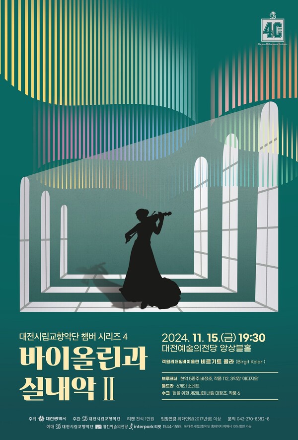 대전시립교향악단이 오는 15일 대전예술의전당 앙상블홀에서 '챔버 시리즈 4 바이올린과 실내악 Ⅱ'를 개최한다. 이번 연주는 2024년의 마지막 챔버 시리즈로, 오스트리아 출신의 저명한 바이올리니스트 비르기트 콜라가 객원 리더로 나선다. 비엔나 심포니 오케스트라 최초의 여성 악장으로 활동했던 비르기트 콜라는 현재 유럽과 일본, 남미 등지에서 활발히 독주자 및 실내악 연주자로 활약 중이다. 이번 무대에서 콜라는 현악 앙상블을 이끌며, 현악기의 다양한 매력을 선보일 예정이다. 첫 곡으로는 브루크너의 '현악 5중주 바장조' 중 3악장 '아다지오'가 연주된다. 이 작품은 교향곡으로 명성을 쌓은 브루크너의 실내악 작품 중 하나로, 특히 3악장의 서정적이면서도 깊은 울림은 청중에게 웅장한 감동을 안겨준다. 이어 연주될 작품은 툴드라의 '6개의 소네트'로, 사랑과 자연을 노래하듯 시적 감성을 자아내는 곡이다. 유럽 정형시인 소네트 형식을 바탕으로 현악기의 감각적 색채를 섬세하게 표현하며, 악기 간의 교감을 통해 다채로운 음색을 느낄 수 있다. 공연의 마지막은 수크의 '현을 위한 세레나데'로 장식된다. 젊음의 활기와 낭만적 정서를 담아낸 이 곡은 밝고 따뜻한 현악기의 음색을 극대화하며, 관객들에게 세레나데만이 전달할 수 있는 부드럽고 낭만적인 에너지를 선사할 것이다. 이번 공연의 예매는 대전시립교향악단 홈페이지, 대전예술의전당 홈페이지, 인터파크에서 공연 전일 오후 5시까지 가능하다. 자세한 사항은 대전시립교향악단 홈페이지를 통해 확인할 수 있다. /이승현 기자