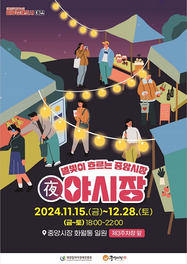 대전시는 오는 15일부터 내달 28일까지 매주 금요일과 토요일 오후 6시부터 밤 10시까지 동구 중앙시장 화월통에서 겨울 야시장을 연다고 밝혔다. 이번 행사는 대전시가 전통시장의 경쟁력을 높이고 관광시장으로 거듭나기 위한 노력을 담았다. 개장식은 별도로 진행되지 않으며, 대신 16일 오후 7시부터 뻔뻔한클래식이 선사하는 작은 음악회가 열린다. 20여 개의 다양한 먹거리 부스와 10여 개의 플리마켓 부스가 마련되어 있으며, 버스킹과 통기타 공연 등 풍성한 문화 행사가 야시장 분위기를 더욱 북돋울 예정이다. 권경민 대전시 경제국장은 "전통시장의 경쟁력을 한층 더 끌어올리기 위해 겨울 야시장 행사를 기획했다"며 "앞으로도 전통시장 및 상점가 상권 활성화 방안을 지속적으로 추진해 지역 경제의 중요한 축인 상인들이 더욱 행복할 수 있는 대전을 만들겠다"고 전했다. /이성재 기자