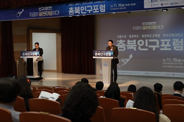 충청북도는 18일 한국교원대학교 청람아트홀에서 '제4회 충북인구포럼'을 개최하며, 인구 감소 문제 해결을 위한 방안을 논의했다. 올해 포럼은 '인구 대반전, 지금이 골든타임이다!'를 주제로, 약 200여 명의 전문가와 관계자가 참석한 가운데 심도 있는 논의의 장이 펼쳐졌다. 충청북도교육청, 한국교원대학교, 서울신문과 공동으로 주최한 이번 포럼은 저출산 문제에 대한 공동 대응 방안을 모색하기 위해 2021년부터 매년 개최되고 있다. 행사는 김영환 충북도지사, 윤건영 충북도교육감, 김성수 서울신문 사장, 김현진 한국교원대 교육연구원장의 환영사로 시작되었으며, 참석자들은 저출산 극복 의지를 다지며 기념 촬영을 진행했다. 기조 발표에서는 차우규 한국교원대 총장이 '대학에서의 인구 교육의 중요성'을 강조했다. 이어 충청북도 장기봉 인구청년정책담당관은 '임신·출산친화 환경 조성을 위한 충북의 정책 방향'을, 충청북도교육청 김선희 장학관은 '늘봄학교 정책 시행 방향 및 운영 성과'를 주제로 발표했다. 이어진 종합토론에서는 차우규 한국교원대 총장이 좌장을 맡고, 양애경 한서대 교수, 김아영 한국교원대 교수, 계봉오 국민대 교수, 권다은 서울대 객원 연구원이 토론자로 참여했다. 이들은 저출산 문제 해결을 위해 인구 가치관 교육, 임신·출산 인프라 강화, 생애주기별 정책 발굴, 지역 소멸 대응 교육 정책의 필요성을 논의했다. 김영환 충북지사는 "이번 포럼은 인구문제의 심각성을 재확인하고, 앞으로의 정책 방향을 설정하는 뜻깊은 자리"라며 "충북도는 참석자들의 의견을 반영해 인구 위기 극복을 위한 정책 마련에 최선을 다하겠다"고 말했다. /이현정 기자