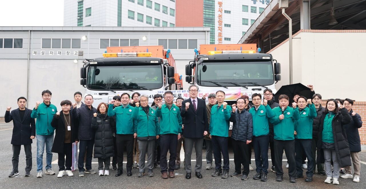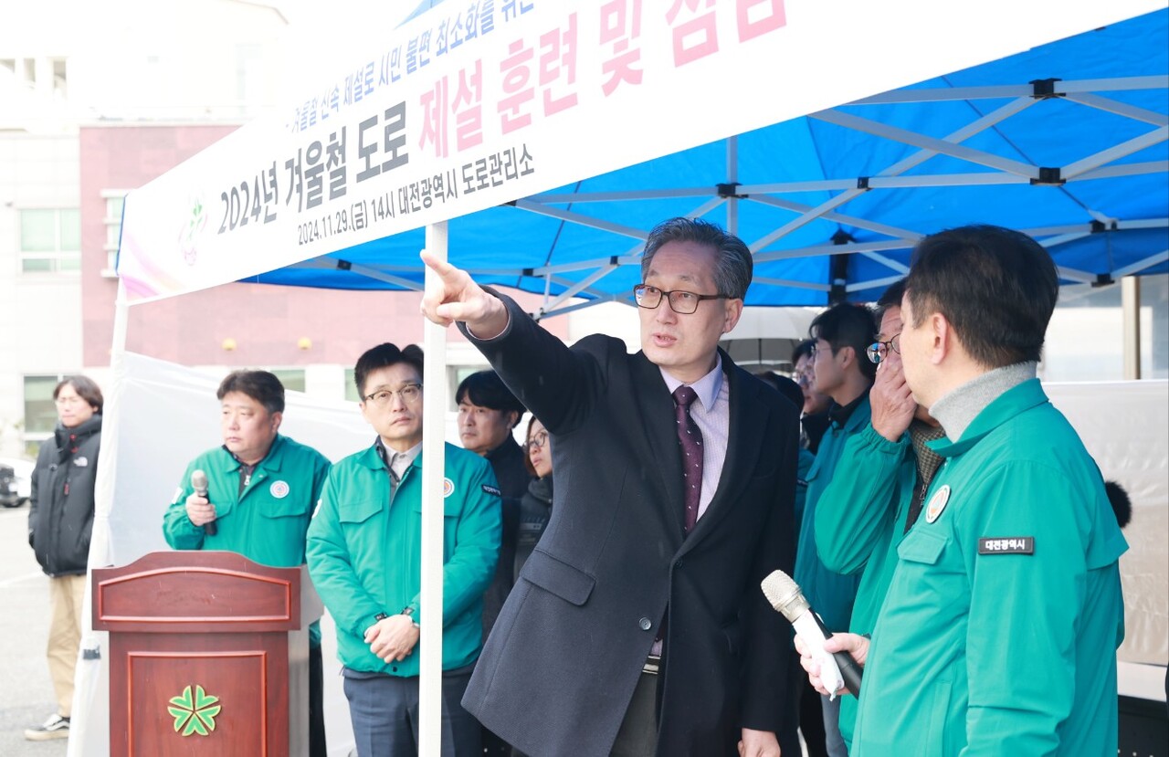 대전시는 29일 서구 복수동 건설관리본부 도로관리소에서 시민안전실, 철도건설국, 건설관리본부, 5개 자치구 관계자 등이 참석한 가운데 '2024년 겨울철 도로 제설 훈련 및 점검 회의'를 개최했다. 이번 훈련은 갑작스러운 폭설과 도로 살얼음(블랙아이스) 등으로 인한 위험이 증가함에 따라 겨울철 자연재난 대책 기간(11월 15일~3월 15일) 동안 시민 안전을 확보하기 위한 방안으로 추진됐다. 회의에서는 시와 자치구 간 제설 노선 분담 계획, 제설 인력·장비 및 제설제 준비 상황, 제설 취약 지역에 대한 현황 및 대처 방안을 점검했다. 특히, 위험 기상 예보 시 상황 판단회의를 시작으로 제설제를 실어 현장에 출동하는 실제 가동 훈련과 대형 제설 차량이 접근하기 어려운 이면도로, 인도 등에서 활용되는 스마트 제설기 운영 시연도 진행됐다. 아울러 원거리에 있는 고갯길 등 제설 취약 지역에 설치된 염수 분사 장치와 도로 열선의 원격 가동을 시연하며 실질적인 현장 대응력을 점검했다. 한편 대전시는 겨울철 대설·한파 발생 시 종합적이고 체계적인 상황 관리를 위해 '2024~2025년 겨울철 자연재난 대비 종합계획'을 수립하고 재난 대응 체계를 강화하고 있다. /이성재 기자