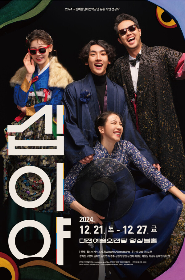 조선시대를 배경으로 재해석된 연극 '십이야'가 지난 21일 대전예술의전당 앙상블홀에서 첫 선을 보이며 관객의 호평을 받았다. 이번 작품은 국립극단과 대전예술의전당이 공동 제작했으며, 연출은 움직임 언어의 대가로 평가받는 임도완이 맡아 주목받았다. 셰익스피어의 대표 낭만 희곡 '십이야'는 사랑과 결혼, 신분 상승의 욕망 등이 뒤얽힌 에피소드를 위트와 해학으로 풀어낸 작품이다. 조선시대로 배경을 옮긴 이번 공연은 원작의 서사를 유지하면서도 경상도와 충청도 사투리를 사용해 셰익스피어 특유의 시적 언어를 한국적으로 변주했다. 이러한 접근은 관객들에게 새로운 감성적 공감대를 형성했다는 평가를 받는다. 공연은 피아노와 북 등 동서양 악기의 조화, 민요와 랩을 접목한 음악, 동양화와 미디어아트를 연상시키는 영상, 개성 있는 의상과 분장을 통해 독특한 미장센을 완성했다. 이는 과거와 현대, 동양과 서양의 경계를 허물며 시각적 몰입감을 높이는 데 기여했다. 특히 배우들의 움직임은 장면 전환과 극적 효과를 유기적으로 연결하며 전통놀이 '판'을 연상시키는 신명과 풍자, 해학을 강조했다. 이러한 연출 방식은 '가장 한국적인 방식으로 새로움을 표현했다'는 평가를 받았다. 공연을 관람한 관객들은 "익숙하면서도 새로운 연극이었다", "눈과 귀가 모두 즐거운 경험이었다"는 반응을 보였다. 연극 '십이야'는 국립극단과 대전예술의전당의 공동 제작으로 진행되며, (재)예술경영지원센터가 추진하는 '국립예술단체 전막 공연유통' 사업의 일환으로 오는 12월 27일까지 대전예술의전당 앙상블홀에서 공연된다. /이성재 기자