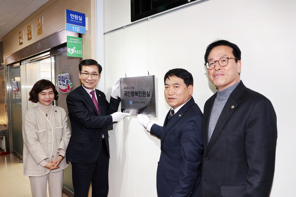 충북교육청은 10일 도교육청 민원실에서 국민행복민원실 인증 현판식을 개최했다. 국민행복민원실 인증은 행정안전부가 지자체, 교육청, 특별지방행정기관 등을 대상으로 민원 환경과 민원서비스 등 4개 분야, 7개 지표, 25개 항목을 4단계 심사를 통해 종합 평가해 우수기관에 부여하는 인증이다. 이번 인증은 충북교육청 개청 이래 처음으로 이루어진 성과다. 인증 유효기간은 2023년 12월 1일부터 2027년 11월 30일까지 3년간 유지된다. 윤건영 충북교육감은 현판식 후 민원실을 방문해 민원 담당자들과 소통하며 민원 업무의 고충과 현안을 청취했다. 이어 민원 응대 역량 강화를 위해 자체 제작한 원격 콘텐츠 '친민정음'의 사례 영상을 함께 시청하며 상황별 민원 대응 방안과 유연한 대처의 중요성을 강조했다. 윤 교육감은 이번 국민행복민원실 인증이 민원 서비스 개선을 위한 지속적인 노력의 결과라며 앞으로도 도민들에게 신뢰와 감동을 주는 민원 환경을 만들어갈 것을 약속했다. /이현정 기자