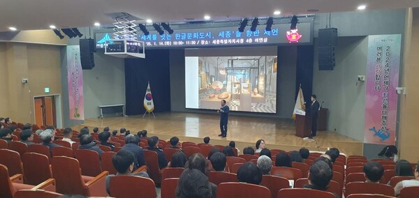 세종시가 14일 시청 여민실에서 문화체육관광부 대한민국 문화도시 평가위원인 정준모 강사 초청 특강을 진행했다. 이날 특강에는 시청 팀장급 이상의 직원, 읍면동장, 산하기관 간부 등 200여 명이 참석해 '한글문화도시'에 대한 공감대를 확산하는 시간을 가졌다. 정준모 강사는 1995년 제1회 광주비엔날레 전시부장 겸 전문위원과 대변인을 거쳐 국립현대미술관 학예연구실장, 덕수궁미술관장, 2011 청주공예비엔날레 총감독, 2025 서울공예박람회 총감독 등을 역임한 문화예술계의 명사다. 정 강사는 '한글문화도시 세종을 향한 제안과 제언'을 주제로 세종시가 대한민국 문화도시로 지정된 원년을 맞아 나아가야 할 방향을 제시했다. 그는 국제비엔날레 개최 현황과 궁서·전서체 등을 활용한 한글 예술 사례를 소개하며, 세종시가 비엔날레 개최를 통해 세계적인 한글문화도시로 발돋움해야 한다고 제언했다. 세종시는 올해 하반기 한글의 가치와 원리를 시각적으로 구현한 '프레 비엔날레'를 준비 중이며, 문화도시 예비사업에서 호평받은 한글문화특별기획전을 부대행사로 개최해 전국의 관심을 집중시킬 예정이다. 시는 '프레 비엔날레'의 성공을 발판으로 2027년 세계적인 예술가들이 한글을 주제로 다양한 작품을 선보이는 '제1회 국제 한글 비엔날레'를 개최할 계획이다. 최민호 시장은 "우리시는 올해 '국제 한글 프레 비엔날레'를 통해 한글을 매개로 한 세계적 미술전의 서막을 연다"며 "정준모 강사의 특강은 첫 비엔날레를 준비하는 세종시에 창의와 상상의 바람을 불어넣을 것"이라고 말했다. 대한민국 문화도시는 대통령 직속 지방시대위원회가 수립한 제1차 지방시대 종합계획(2023∼2027)에 따라 기회발전특구, 도심융합특구와 함께 4대 특구에 포함된 현 정부의 대표 정책이다. 세종시는 '세계를 잇는 한글문화도시, 세종'을 비전으로 지난해 말 대한민국 문화도시에 최종 지정됐다. 이에 따라 세종시는 전국 최초이자 유일한 한글문화도시로서 3년간 국비 100억 원을 지원받아 다양한 한글문화 사업을 추진할 예정이다. /배진우 기자
