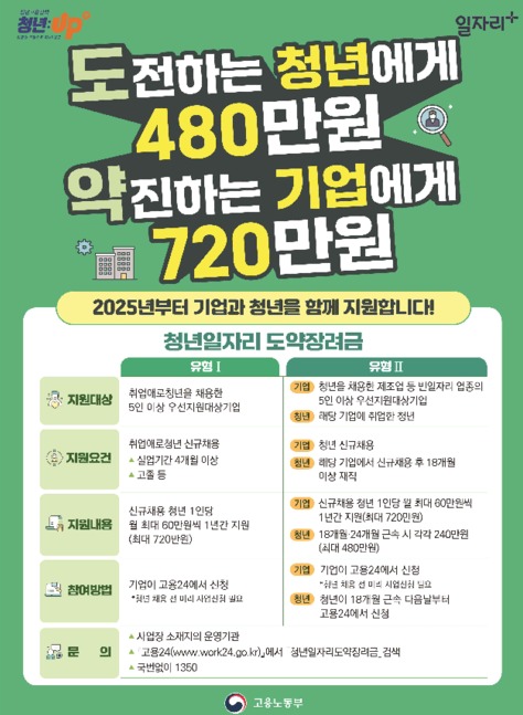 고용노동부는 청년들의 취업 기회를 확대하고 중소기업의 인력난을 완화하기 위해 1월 23일부터 ‘청년일자리도약장려금’ 사업을 시작한다. 이번 사업은 기존에 취업애로청년을 채용한 중소기업에게만 지원하던 방식에서 한 걸음 더 나아가, 제조업 등 인력 부족 업종에 취업한 청년이 장기 근속할 경우 추가적인 인센티브를 제공하는 방향으로 확대되었다. 올해 신설된 유형2의 경우, 빈일자리 업종에 종사하는 청년이 18개월 이상 근속하면 최대 480만 원의 지원금을 받을 수 있다. 이에 더해, 기업 역시 채용 시 최대 720만 원까지 지원받을 수 있어 구인·구직 간 미스매치 해소에 기여할 것으로 보인다. 고용노동부는 이중구조적인 노동시장과 수시·경력직 위주의 채용 트렌드로 인해 청년들의 구직 부담이 커지는 상황에서 이번 제도가 실질적인 도움을 줄 것으로 기대하고 있다. 특히 장기 근속 유도를 위한 유형2가 신설된 만큼 청년 취업과 기업 성장 간의 긍정적 시너지 효과가 예상된다. /이승현 기자 이승현 기자 lee@sejongilbo.co.kr 다른기사 보기 저작권자 © 세종일보 무단전재 및 재배포 금지 당신만 안 본 뉴스 한화 불꽃축제 30일 개최…대전시, 방문객 안전 관리 강화 주민이 채우는 폐교, 지역이 키우는 공간으로 만든다 [사설] 일할 세대가 떠난다 ‘APEC 2025 미래들의 수다’, 청년 시선으로 본 인구위기 어린이 환경교육, 뮤지컬로 배우는 탄소중립 외로움 대신 연결로… 청년 위한 온라인 상담 시범 운영 반복되는 SPC 사고… 노동부 "노동강도·건강영향 재진단 필요" 한화 불꽃축제 30일 개최…대전시, 방문객 안전 관리 강화 개의 댓글 회원로그인 작성자 비밀번호 댓글 내용입력 댓글 정렬 최신순 추천순 답글순 BEST댓글 BEST 댓글 답글과 추천수를 합산하여 자동으로 노출됩니다. 닫기 더보기 댓글삭제 삭제한 댓글은 다시 복구할 수 없습니다. 그래도 삭제하시겠습니까? 비밀번호 닫기 댓글수정 댓글 수정은 작성 후 1분내에만 가능합니다. 본문 / 400 비밀번호 닫기 내 댓글 모음 닫기 주요기사