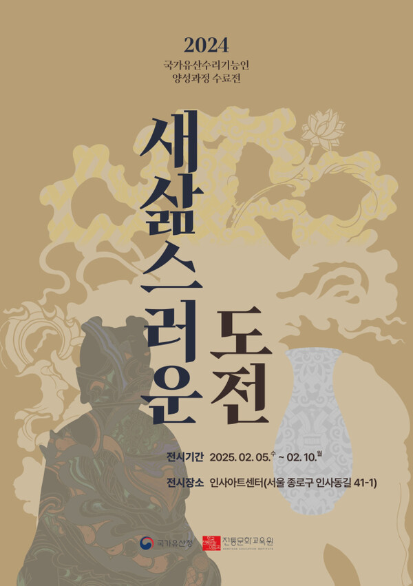 국가유산청 한국전통문화대학교 전통문화교육원이 2월 5~10일 서울 인사아트센터에서 ‘2024 국가유산수리기능인 양성과정 수료전, 새삶스러운 도전’을 개최한다. 이번 전시는 국가유산수리기능인 양성과정을 이수한 교육생들의 작품을 선보이는 자리로, 전통수리기술의 우수성과 전통공예의 미를 직접 확인할 수 있다. ‘새삶스러운 도전’이라는 주제에는 손상된 국가유산이 수리되어 새로운 삶을 얻는다는 의미와 함께, 무심코 지나쳤던 전통문화와 국가유산을 새롭게 바라본다는 뜻이 담겼다. 전시에서는 단청, 모사, 옻칠, 소목, 배첩, 철물, 도금, 보존처리 등 다양한 종목에서 교육생들이 제작한 101점의 작품을 선보인다. 국가유산수리기능인 양성과정과 수료전에 대한 자세한 내용은 한국전통문화대학교와 전통문화교육원 누리집에서 확인할 수 있다. 전통문화교육원은 앞으로도 국가유산 수리현장에 필요한 맞춤형 교육을 통해 국가유산 수리기능 인력 양성에 집중할 계획이다. /이승현 기자