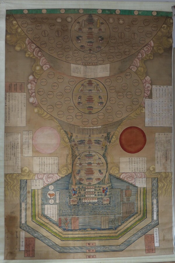 삼천대천세계도 대전시 국가등록문화유산에 새로운 문화재가 추가된다. 이번에 등록 예고된 유산은 대전시 추목동에 위치한 수운교가 소장한 대형 종교화 '수운교 삼천대천세계도'이다. '수운교 삼천대천세계도'는 불교의 수미세계도 형식을 차용해 수운교의 세계관을 표현한 작품으로, 근대기 화풍이 뚜렷하게 드러난다. 화승 일섭의 『연보』를 통해 1929년 화원 김보응·김일화가 제작한 것으로 밝혀져 그 역사적 가치를 인정받았다. 대전시는 2023년 국가등록문화유산 신청을 위해 기록화 사업을 추진하며 수운교 소장자료를 조사했고, 이를 바탕으로 '삼천대천세계도'가 국가유산청의 조사와 문화유산위원회 심의를 거쳐 국가등록문화유산으로 등록 예고되었다. 삼천대천세계도 한편, 신용협동조합중앙회가 소장한 자료도 대전시 문화유산위원회의 심의를 통해 시 등록문화유산으로 등록 예고되었다. 등록 예고된 자료는 '신용조합부기해설', '신용조합개론과 성가신협의 연혁', '황간신협조합원장', '황간신용조합정관' 등 총 4점이다. 이 자료들은 작성 지역은 다르지만 신용조합의 초기 운영 현황을 보여주는 중요한 기록으로 평가받았다. 이번에 등록 예고된 유산들은 30일간 별다른 이견이 없을 경우 최종 심의를 거쳐 공식 등록될 예정이다. /이승현 기자