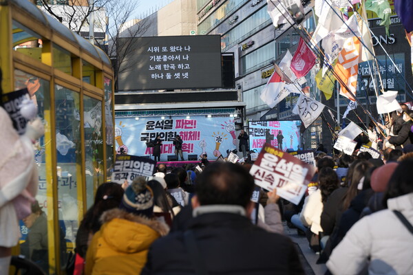 윤석열 대통령의 탄핵을 지지하는 시위가 대전 갤러리아 타임월드 은하수네거리 인근에서 진행됐다. /이성재 기자 이성재 기자 a1065@sejongilbo.co.kr 다른기사 보기 저작권자 © 세종일보 무단전재 및 재배포 금지 당신만 안 본 뉴스 한화 불꽃축제 30일 개최…대전시, 방문객 안전 관리 강화 주민이 채우는 폐교, 지역이 키우는 공간으로 만든다 [사설] 일할 세대가 떠난다 ‘APEC 2025 미래들의 수다’, 청년 시선으로 본 인구위기 어린이 환경교육, 뮤지컬로 배우는 탄소중립 외로움 대신 연결로… 청년 위한 온라인 상담 시범 운영 반복되는 SPC 사고… 노동부 "노동강도·건강영향 재진단 필요" 한화 불꽃축제 30일 개최…대전시, 방문객 안전 관리 강화 개의 댓글 회원로그인 작성자 비밀번호 댓글 내용입력 댓글 정렬 최신순 추천순 답글순 BEST댓글 BEST 댓글 답글과 추천수를 합산하여 자동으로 노출됩니다. 닫기 더보기 댓글삭제 삭제한 댓글은 다시 복구할 수 없습니다. 그래도 삭제하시겠습니까? 비밀번호 닫기 댓글수정 댓글 수정은 작성 후 1분내에만 가능합니다. 본문 / 400 비밀번호 닫기 내 댓글 모음 닫기 주요기사