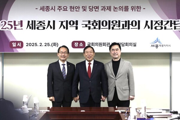 세종시가 지역 국회의원들과 협력해 행정수도 완성을 위한 개헌 논의를 확산하고, 주요 현안 해결에 나선다. 최민호 세종특별자치시장은 25일 서울 국회의원회관에서 김종민·강준현 의원과 시정 간담회를 갖고, 개헌을 통한 행정수도 완성과 세종시 주요 현안에 대한 협력을 논의했다. 이날 간담회에는 임채성 시의회 의장, 시의원, 주요 실·국장도 참석해 핵심 당면 과제를 공유했다. 간담회에서 시 관계자들은 △대통령 집무실·국회 세종의사당 등 행정수도 완성 방안 △정부 추가경정예산 반영을 위한 국비 지원 과제 △올해 세종시 주요 업무계획 및 핵심 추진과제 등을 설명했다. 특히 최민호 시장은 국가 균형발전과 위기 극복을 위한 방안으로 ‘행정수도 세종’을 헌법에 명문화할 필요성을 강조하며, 제22대 국회에서 개헌 논의를 확산해 줄 것을 요청했다. 세종에는 국회 세종의사당 건립이 확정되고 대통령 제2집무실 설치가 추진되는 등 행정수도로서의 기능이 확대되고 있지만, 법적 지위와 권한이 부족한 만큼 이를 개헌을 통해 보완해야 한다는 주장이다. 최 시장은 "국회 세종의사당 건립이 확정된 상황에서 대통령실까지 세종으로 이전하면 실질적인 행정수도가 될 것"이라며 "정부 차원에서도 대통령실 이전에 힘을 실어야 한다"고 말했다. 이어 "헌법재판소가 대통령과 국회의장이 근무하는 곳을 수도로 판단한 논리를 고려할 때, 국회 이전이 확정된 만큼 대통령실 이전이 관건"이라며 "이를 기반으로 개헌을 추진해야 한다"고 강조했다. 아울러 세종시법의 전부개정 필요성도 제기됐다. 현행 세종시법은 시 설치를 위한 최소한의 규정만 담고 있어, 행정수도 기능과 자족기능 강화를 위한 법적 근거를 확보하기 위해서는 개정이 필수적이라는 입장이다. 이와 함께 2031년까지 세종지방법원과 검찰청 설치가 원활하게 추진될 수 있도록 2025년 추가경정예산에 설계·부지 매입 등을 위한 사업비 반영도 요청됐다. 또한 최근 세종시가 한글문화도시로 지정된 만큼, 국립한글문화글로벌센터 조성 등 한글문화 진흥 사업에 대한 관심과 지원도 건의했다. 김종민 의원은 "올해 국회 전면 이전을 정치권에서 합의해야 한다"며 "조기 대선이 이뤄질 경우 차기 대통령 집무실을 세종에서 시작하도록 여야 후보 간 합의를 이끌어내자"고 제안했다. 강준현 의원도 "세종시는 특정 지역만을 위한 도시가 아니라 국가적 차원의 행정수도"라며 "국회와 대통령실 완전 이전이 국가적 의제로 다뤄질 수 있도록 협력하겠다"고 밝혔다. 세종시는 이번 간담회에서 논의된 사안들이 실질적인 정책으로 이어질 수 있도록 지역 국회의원들과 지속적으로 협력할 방침이다. /배진우 기자