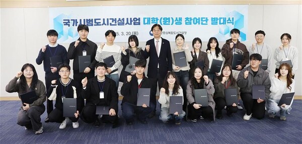 청년들의 젊은 상상력이 국가시범도시의 미래를 그린다. 행정중심복합도시건설청(행복청)은 지난 20일 정부세종청사에서 '국가시범도시건설사업 대학(원)생 참여단 발대식'을 개최했다. 행복청은 행정중심복합도시(행복도시) 5-1생활권에 스마트시티 국가시범도시를 조성하고 있다. 이 사업은 미래 스마트기술을 집약한 도시를 구축하는 것으로, 지난해 사업시행자가 지정됐으며 올해 안에 실시계획 수립을 목표로 스마트서비스와 도시계획을 구체화하고 있다. 대학(원)생 참여단은 창의적이고 신선한 시각에서 혁신적이고 지속 가능한 스마트서비스 모델을 발굴하고, 스마트시티 및 도시계획 분야의 미래 인재를 양성하기 위해 구성됐다. 참여단은 전국의 스마트시티 관련 전공 대학(원)생 19명으로 이뤄졌으며, 향후 5개월간 국가시범도시 건설사업과 관련된 다양한 활동을 수행할 예정이다. 이들은 창의적인 아이디어를 발굴하고 실현 가능성이 높은 정책을 제안하는 한편, 국가시범도시 사업의 비전과 강점을 시민에게 알리는 온·오프라인 홍보 활동도 진행한다. 발대식에서는 김형렬 행복청장이 직접 참여단원들에게 위촉장을 수여했으며, 국가시범도시의 비전과 미래상을 공유하는 자리도 마련됐다. 참여단은 강의실에서 배운 이론과 기술이 실제 도시에서 구현되는 과정을 직접 확인할 수 있다는 점에서 기대감을 드러냈으며, 대학생들의 아이디어가 국가시범도시 건설 계획에 반영될 수 있도록 적극적으로 참여할 계획이라고 밝혔다. 김형렬 행복청장은 "젊은 인재들의 창의적 아이디어와 혁신적 제안이 미래형 도시 건설의 중요한 밑거름이 될 것"이라며, "앞으로도 젊은 세대가 국가 정책에 활발히 참여할 수 있도록 기회를 제공하고 미래 세대의 역할을 적극적으로 지원하겠다"고 말했다. /배진우 기자