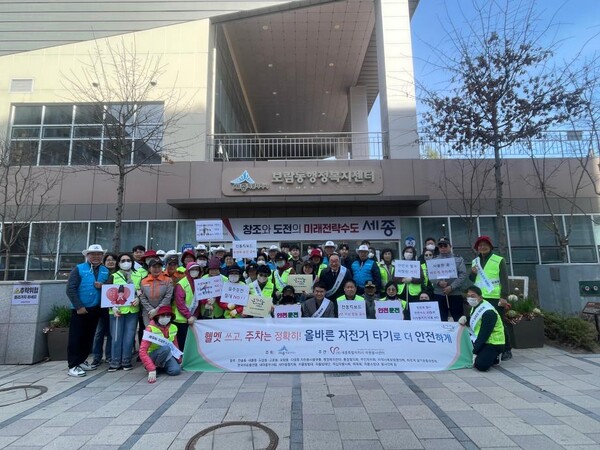 세종시가 28일 대중교통의 날을 맞아 보람동 일대에서 자전거와 개인형 이동장치(PM)의 올바른 이용 문화를 확산하기 위한 캠페인을 진행했다. 자전거와 전기자전거, 전동킥보드 이용이 증가하는 가운데 무분별한 주차를 막고 안전모 착용 등 기본 수칙 준수를 강조하기 위해 마련된 행사다. 세종시청, 세종시 자원봉사센터, 보람동 행정복지센터, 세종경찰청(시니어 폴리스) 등 지역 내 여러 기관이 참여해 보람동의 학교, 상가, 학원 밀집 지역을 돌며 주요 위반 사례를 안내하고 공영자전거에 안전수칙 홍보 태그를 부착하는 등의 활동을 진행했습니다. 천흥빈 교통국장은 자전거와 개인형 이동장치 이용 시 안전 수칙 준수가 필수적이라며 올바른 이용 문화를 정착시키기 위해 관계기관과 협력해 지속적으로 안전 캠페인을 전개할 계획이라고 밝혔다. 세종시는 이번 보람동을 시작으로 한솔동, 새롬동, 도담동, 고운동, 다정동 등 학교와 상가, 학원이 밀집한 지역에서 자원봉사센터와 함께 캠페인을 이어갈 예정이다. /배진우 기자 배진우 기자 gogk88@sejongilbo.co.kr 다른기사 보기 저작권자 © 세종일보 무단전재 및 재배포 금지 당신만 안 본 뉴스 한화 불꽃축제 30일 개최…대전시, 방문객 안전 관리 강화 주민이 채우는 폐교, 지역이 키우는 공간으로 만든다 [사설] 일할 세대가 떠난다 ‘APEC 2025 미래들의 수다’, 청년 시선으로 본 인구위기 어린이 환경교육, 뮤지컬로 배우는 탄소중립 외로움 대신 연결로… 청년 위한 온라인 상담 시범 운영 반복되는 SPC 사고… 노동부 "노동강도·건강영향 재진단 필요" 한화 불꽃축제 30일 개최…대전시, 방문객 안전 관리 강화 개의 댓글 회원로그인 작성자 비밀번호 댓글 내용입력 댓글 정렬 최신순 추천순 답글순 BEST댓글 BEST 댓글 답글과 추천수를 합산하여 자동으로 노출됩니다. 닫기 더보기 댓글삭제 삭제한 댓글은 다시 복구할 수 없습니다. 그래도 삭제하시겠습니까? 비밀번호 닫기 댓글수정 댓글 수정은 작성 후 1분내에만 가능합니다. 본문 / 400 비밀번호 닫기 내 댓글 모음 닫기 주요기사