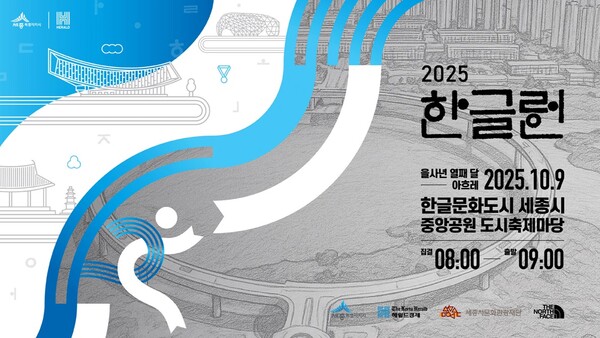 세종시가 오는 10월 9일 한글날을 맞아 '2025 한글런(Run)'을 개최하고 참가자 1만 명을 선착순 모집한다. 올해로 두 번째를 맞는 이번 행사는 세종대왕의 뜻을 기리고 한글의 가치를 되새기기 위한 취지로 기획됐다. 참가 신청은 5월 15일부터 공식 누리집을 통해 받으며, 참가비는 10.9㎞ 구간 5만 5000원, 5.15㎞ 구간 4만 4000원이다. 참가자 전원에게는 훈민정음 디자인이 적용된 노스페이스 티셔츠 등 기념품이 제공된다. 두 코스는 각각 한글날과 세종대왕 탄신일을 상징하는 거리로 설정됐으며, 중앙공원 도시축제마당을 출발해 세종시 도심을 순환하는 방식으로 운영된다. 행사는 세종시와 헤럴드미디어그룹이 공동 주최하고, 헤럴드미디어그룹과 세종시문화관광재단이 공동 주관한다. 지난해에는 7000여 명이 참가해 일주일 만에 모집이 마감된 바 있으며, 올해는 참여 인원을 1만 명으로 늘려 운영한다. 특히 기부 마라톤으로 잘 알려진 연예인 션이 지난해에 이어 올해도 참가해 대회 상징성을 더할 예정이다. 세종시 관계자는 한글 창제의 의미를 공유하고 세종시의 자연과 문화를 함께 즐기는 행사로 자리잡을 수 있도록 준비에 만전을 기하겠다고 밝혔다. /배진우 기자