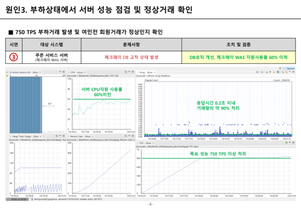 세종 여민전 세종시는 지난 6월 여민전 충전 장애의 원인이 시스템 과부하였음을 확인하고, 전반적인 성능 개선과 서버 증설을 완료해 오는 7월 1일 여민전 180억 원어치 충전을 예정대로 추진한다고 밝혔다. 시는 25일 설명자료를 통해 "6월 1일 충전 장애는 캐시백율 상향과 결제망 전환에 따른 트래픽 예측 실패, 장비 과부하가 복합적으로 작용한 결과"라며 "침입차단시스템(IPS), 데이터베이스(DB) 등의 설정 오류도 영향을 미쳤다"고 분석했다. 특히 이번 장애는 캐시백 혜택이 기존 5%에서 7%로 상향되며 접속자가 급증한 데다, 오픈뱅킹 방식으로 결제망이 변경되면서 트래픽에 대한 대응이 미흡했던 것으로 나타났다. 이에 따라 시는 장애 이후 전체 장비에 대해 정밀 점검을 실시하고, 서버 증설 및 시스템 환경 개선 작업을 마쳤다. 침입차단시스템의 보안정책을 조정하고, L4 스위치 로드밸런싱을 개선했으며, 데이터베이스 처리 성능도 강화해 초당 최대 750건의 거래를 안정적으로 처리할 수 있도록 시스템을 확장했다. 7월 1일 오전 10시에 시작되는 여민전 발행과 관련해서도 비상대응 체계를 강화한다. 시는 사전 점검과 모의훈련을 거쳐 대응력을 높였으며, 발행 당일에는 엔지니어와 고객센터 인력을 추가 배치해 시민 불편을 최소화할 방침이다. 시민들의 발행 방식 개선 요구에 대해선 "추첨 방식은 시스템적으로 구현이 어렵고, 무제한 발행은 조기 소진 우려가 크다"며 현행 선착순 방식 유지를 불가피한 선택으로 설명했다. 시는 "여민전은 지역 소상공인 보호와 지역경제 활성화의 핵심 수단"이라며 "이번 장애를 교훈 삼아 보다 신뢰받는 서비스 제공에 최선을 다하겠다"고 밝혔다. /배진우 기자 배진우 기자 gogk88@sejongilbo.co.kr 다른기사 보기 저작권자 © 세종일보 무단전재 및 재배포 금지 당신만 안 본 뉴스 한화 불꽃축제 30일 개최…대전시, 방문객 안전 관리 강화 주민이 채우는 폐교, 지역이 키우는 공간으로 만든다 [사설] 일할 세대가 떠난다 ‘APEC 2025 미래들의 수다’, 청년 시선으로 본 인구위기 어린이 환경교육, 뮤지컬로 배우는 탄소중립 외로움 대신 연결로… 청년 위한 온라인 상담 시범 운영 반복되는 SPC 사고… 노동부 "노동강도·건강영향 재진단 필요" 한화 불꽃축제 30일 개최…대전시, 방문객 안전 관리 강화 개의 댓글 회원로그인 작성자 비밀번호 댓글 내용입력 댓글 정렬 최신순 추천순 답글순 BEST댓글 BEST 댓글 답글과 추천수를 합산하여 자동으로 노출됩니다. 닫기 더보기 댓글삭제 삭제한 댓글은 다시 복구할 수 없습니다. 그래도 삭제하시겠습니까? 비밀번호 닫기 댓글수정 댓글 수정은 작성 후 1분내에만 가능합니다. 본문 / 400 비밀번호 닫기 내 댓글 모음 닫기 주요기사
