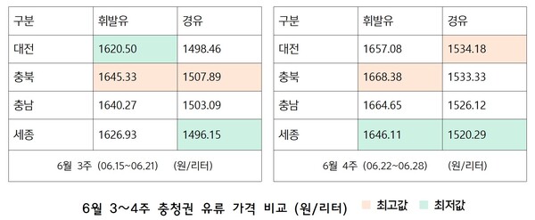 아이클릭아트 중동발 지정학적 리스크에 따른 국제유가 상승 여파가 충청권 유가에 본격적으로 반영되며 6월 3주차(15~21일)부터 4주차(27~28일) 사이 휘발유와 경유 가격이 전 지역에서 일제히 상승했다. 충청권 4개 시·도 모두 주간 평균 (ℓ당)20원 이상 올랐으며 대전은 두 유종 모두에서 가장 큰 상승폭을 보였다. 휘발유 가격은 3주차 충청권 평균 1633.26원에서 4주차 1659.06원으로 25.80원 상승하며 1.58% 증가했다. 경유는 같은기간 평균 1501.40원에서 1528.48원으로 27.08원 올라 1.80% 증가했다. 대전은 휘발유가 36.58원, 경유가 35.72원 오르며 각각 2.26%, 2.38% 상승해 가장 높은 변동폭을 보였다. 충북은 두 주 모두 휘발유 가격이 최고가를 기록했고, 세종은 상대적으로 가장 낮은 가격대와 상승폭을 나타냈다. 이 같은 유가 상승은 13일 이스라엘의 이란 공습 이후 호르무즈 해협 봉쇄 우려가 커지며 국제유가가 단기간 급등한 데 따른 것으로 분석된다. 두바이유는 6월 1주 64.3달러에서 3주 74.7달러로 10.4달러 올랐고 브렌트유도 한때 67.7달러까지 상승했다. 국제유가는 통상 2~3주의 시차를 두고 국내 유가에 반영되기 때문에 이달 중순 이후 국내 주유소의 가격이 반응한 것으로 보인다. 국내 요인도 복합적으로 작용했다. 정부는 유류세 인하율을 휘발유 기준 -25%에서 20%로, 경유는 -37%에서 -30%로 축소했고 정유사 재고와 복잡한 유통 단계, 세금 등으로 인해 가격 인하보다는 인상 반영이 빠르게 이뤄졌다. 국제 유가는 6월 말 기준 이스라엘과 이전의 휴전 합의로 다소 안정세를 보이고 있으나 중동 정세의 불확실성과 글로벌 수요 회복에 따른 상승 가능성이 있다. 정부는 유류세 인하 연장을 8월 말까지 지속하고 범부처 점검단을 운영중이지만 반복되는 유가 충격을 막기 위해 중장기적 에너지 전환과 수요 억제책이 병행돼야 한다는 목소리가 나오고 있다. /이승현 기자