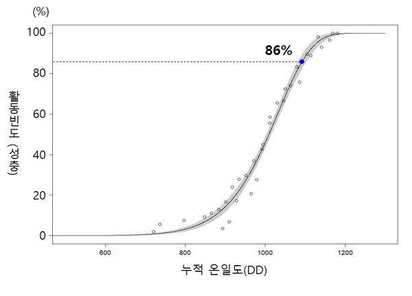 국립산림과학원은 붉은등우단털파리(속칭 러브버그)의 활동이 7월 초를 기점으로 대부분 종료될 것으로 예측했다. 국립산림과학원 산림병해충연구과는 시민과학 플랫폼인 iNaturalist에 등록된 관찰 정보와 기상자료를 바탕으로 러브버그 활동 시기를 분석한 결과, 7월 1일 기준 전체 활동량의 약 86%가 진행된 것으로 추정되며, 향후 7~10일 이내 대부분 개체가 자연 소멸할 것으로 전망했다. 러브버그는 일본, 중국, 대만 등 동아시아 지역에서 분포하는 부식성 파리류로, 인체나 농작물에 직접적인 피해를 주지는 않지만, 성충이 6~7월 집중적으로 발생하면서 도시 불빛에 몰려드는 특성 탓에 시민 생활에 일시적 불편을 유발하고 있다. 꽃가루를 매개하는 역할도 일부 수행하는 것으로 알려져 있다. 이번 분석에서는 지난해보다 약 일주일 늦게 개체가 활동을 시작한 것으로 나타났으며, 이에 따라 활동 종료 시점도 후행하는 양상을 보였다. 경기 남부와 중부 지역에서의 관측이 확인되면서 향후 분포 지역이 확대될 가능성도 제기됐다. 국립산림과학원 산림병해충연구과는 관계 부처와 협력해 향후 대응 방안을 마련할 방침이며, 시민 불편을 최소화하기 위해 예측 정보 고도화에 지속적으로 나설 계획이라고 밝혔다. /이현정 기자