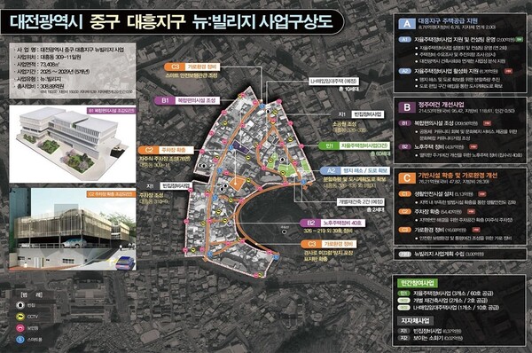 대전시가 중구 대흥동 일원에 총사업비 309억 원을 투입하는 뉴:빌리지 도시재생사업을 본격적으로 추진한다. 시는 지난해 12월 국토교통부 도시재생 공모에서 대흥동 일대가 뉴:빌리지 사업 대상지로 선정된 이후 행정절차를 거쳐 지난 6월 30일 '도시재생 활성화계획'을 고시했다. 사업 대상지는 중구 대흥동 309-11번지 일원으로, 면적은 약 7만 3000㎡다. 사업기간은 2025년부터 2029년까지 5년이며, 전체 사업비는 309억 원이다. 이 가운데 국비 150억 원, 시·구 지방비 150억 원, 기타 민간재원은 8억 8900만 원이 투입된다. 대흥동은 과거 대전도청이 위치했던 지역으로 한때 상권과 주거가 밀집한 중심지였으나, 인구 감소와 산업 쇠퇴, 기반시설 노후화가 지속되면서 정주여건이 악화된 상태다. 이번 도시재생사업은 기반시설을 정비하고 주거환경을 개선해 원도심의 활력을 회복하는 데 목적이 있다. 주요 사업으로는 골목길 및 가로환경 개선, 방범 CCTV 및 보안등 설치 등 생활안전 인프라 구축, 복합 커뮤니티센터 조성, 자주식 주차장 확보 등이 포함된다. 대전시는 주민 체감도가 높은 생활밀착형 사업을 중심으로 정주환경의 실질적 개선을 도모할 계획이다. 시는 도시재생 전문가 자문, 주민 의견 수렴, 부서 간 협업을 통해 사업의 실행력을 높이고, 자율주택정비사업과 맹지 해소 컨설팅 등과 연계해 노후 주택지의 주택공급 활성화도 유도할 방침이다. 대전시 관계자는 "이번 도시재생사업은 침체된 대흥동 일대에 실질적 변화를 이끌 계기가 될 것"이라며 "향후에도 국비 공모를 지속적으로 추진해 도시재생 기반을 확대해 나가겠다"고 밝혔다. /이성재 기자