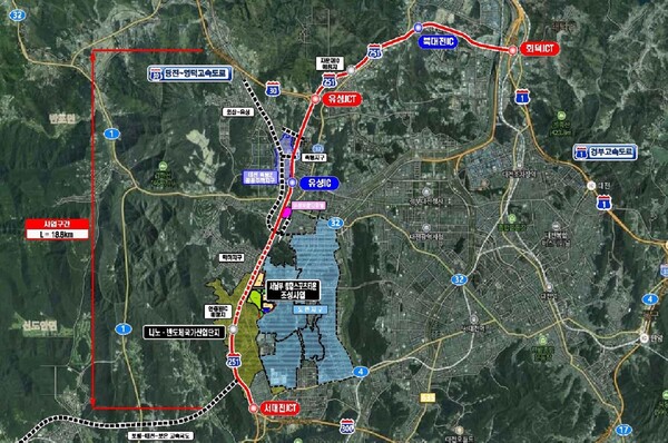 호남고속도로지선 서대전~회덕구간 확장공사 위치도 호남고속도로지선 서대전~회덕 구간이 6차로로 확장된다. 대전 유성구 원내동에서 대덕구 전민동까지 이어지는 약 18.6km 구간으로, 그동안 상습 정체와 교통사고가 잦았던 지역이다. 이번 사업은 기획재정부의 예비타당성조사를 통과하면서 본격 추진될 전망이다. 총사업비는 3522억 원으로, 2026년 착공 후 2033년 완공을 목표로 추진된다. 사업은 단순한 차로 확장에 그치지 않고, 세종과 대전을 잇는 광역 교통망의 병목 구간을 해소하는 데 초점을 맞춘다. 이를 통해 수도권에서 충청·호남권으로 이어지는 물류 흐름이 원활해지고, 출퇴근 교통난이 크게 완화될 것으로 기대된다. 대전시와 지역 정치권, 한국도로공사는 수년 전부터 이 구간의 확장 필요성을 지속적으로 제기해 왔다. 세종과 대전 신도시 개발로 교통 수요가 급증하면서, 해당 노선은 지역 주민의 이동뿐 아니라 산업물류의 핵심 축으로 자리 잡았다. 이번 사업은 제10차 재정사업평가위원회 심의를 거쳐 확정된 대규모 사회간접자본(SOC) 프로젝트 중 하나로, 충청권 광역경제권 형성과 수도권-호남권을 잇는 메가시티 기반 조성에도 중요한 역할을 할 것으로 전망된다. 2026년 상반기부터는 타당성 조사 및 실시설계가 진행되며, 이후 단계별 공사 착수가 예정되어 있다. 완공 시점에는 대전과 세종, 나아가 호남권 전반의 교통 효율성이 한층 높아질 것으로 보인다./이성재 기자