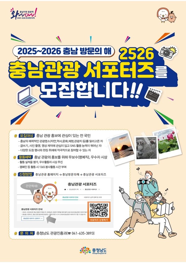 충남도가 ‘2025~2026 충남 방문의 해’를 앞두고 청년층과 함께 지역 관광의 활력을 높이기 위한 서포터즈 모집에 나섰다. 도는 6일 한서대학교에서 ‘충남관광 서포터즈 모집 홍보 행사’를 열고, 지역 관광자원을 알릴 청년 홍보단 참여를 독려했다. 이번 행사는 대학생과 청년층이 직접 지역 관광 홍보에 참여하도록 유도하기 위한 것으로, 도내 자연·역사·축제·체험 등 관광 명소를 사회관계망을 통해 소개하고, 자원봉사 및 캠페인 활동을 펼치는 역할을 맡게 된다. 행사에는 한서대 재학생들이 대거 참여해 높은 관심을 보였으며, 현장 가입자에게는 충남관광 공식 캐릭터인 ‘워디·가디’ 기념품이 제공돼 호응을 얻었다. 한서대는 국내 유일의 활주로를 갖춘 항공 특화 대학으로, 지난 4월 ‘충남관광 홍보단’을 발족하고 올해 ‘2025 글로컬대학’으로 선정되는 등 지역 관광 활성화에 기여하고 있다. 충남도는 서포터즈 활동을 통해 젊은 세대가 지역 관광의 주체로 참여하도록 지원하고, 국내외 관광객 유치 분위기를 확산시킬 계획이다. 참여 신청은 충남관광 누리집이나 모집 포스터의 정보무늬(QR코드)를 통해 가능하다. /이성재 기자 이성재 기자 a1065@sejongilbo.co.kr 다른기사 보기 저작권자 © 세종일보 무단전재 및 재배포 금지 당신만 안 본 뉴스 한화 불꽃축제 30일 개최…대전시, 방문객 안전 관리 강화 주민이 채우는 폐교, 지역이 키우는 공간으로 만든다 [사설] 일할 세대가 떠난다 ‘APEC 2025 미래들의 수다’, 청년 시선으로 본 인구위기 어린이 환경교육, 뮤지컬로 배우는 탄소중립 외로움 대신 연결로… 청년 위한 온라인 상담 시범 운영 반복되는 SPC 사고… 노동부 "노동강도·건강영향 재진단 필요" 한화 불꽃축제 30일 개최…대전시, 방문객 안전 관리 강화 개의 댓글 회원로그인 작성자 비밀번호 댓글 내용입력 댓글 정렬 최신순 추천순 답글순 BEST댓글 BEST 댓글 답글과 추천수를 합산하여 자동으로 노출됩니다. 닫기 더보기 댓글삭제 삭제한 댓글은 다시 복구할 수 없습니다. 그래도 삭제하시겠습니까? 비밀번호 닫기 댓글수정 댓글 수정은 작성 후 1분내에만 가능합니다. 본문 / 400 비밀번호 닫기 내 댓글 모음 닫기 주요기사