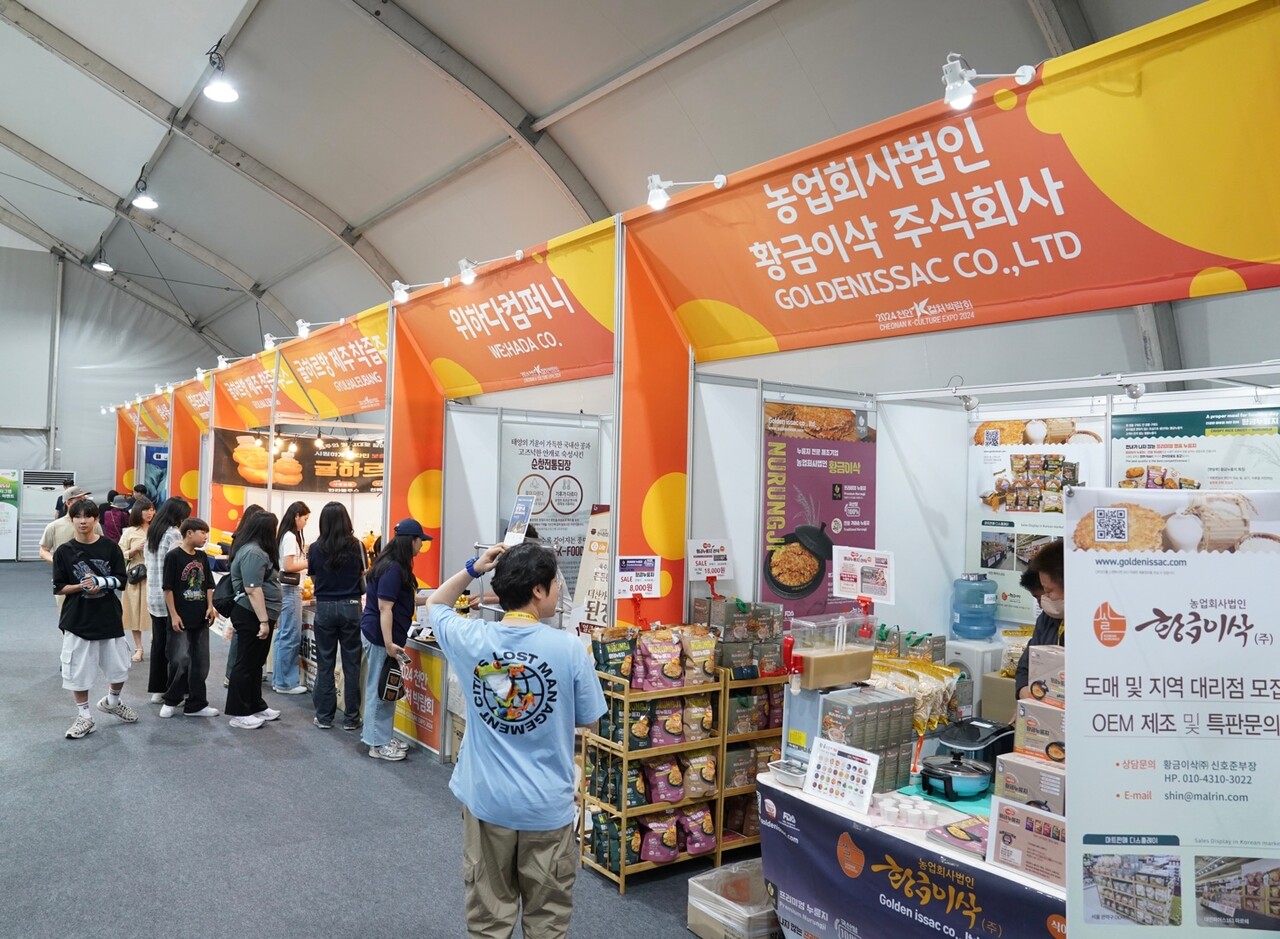 세계로 뻗어나가는 K-콘텐츠를 중심으로 한 ‘2024 천안 K-컬처박람회’ 뷰티·푸드 산업전시관에 많은 인파가 몰리면서 박람회 인기를 실감케 했다. 천안시는 독립기념관, 천안문화재단과 함께 지난 22일부터 독립기념관에서 열린 K-컬처박람회에 뷰티·푸드·웹툰 등 한류 문화와 관련된 산업전시관을 조성하고 각 산업과 관련된 제품, 기술, 서비스를 선보이고 있다. 세계 시장에 한류를 주도한 K-팝·드라마 인기에 힘입어 푸드와 뷰티 등 생활용품까지 한류 콘텐츠로 자리 잡으면서 산업전시관에는 다양한 제품과 이를 체험해 보기 위한 관람객들로 북적거렸다. K-뷰티 산업전시관에는 천안지역 대표 미용전문기업인 '리챠드 프로헤어'가 무료 두피 진단프로그램을 진행하고 백석문화대학 토탈뷰티학과 재학생들이 퍼스널컬러·네일아트·타투 체험을 실시해 관람객들로부터 큰 인기를 받았다. 보령머드화장품과 지역 특산품인 '성환배'를 원료로 제조한 기초화장품, 헤어제품 등 K-뷰티의 특색을 드러내는 기업들이 입점해 관심을 끌었다. 천안시가 유망 스타트업으로 선정한 호흡기 관련 의료기와 IT스타트업의 AI 피부진단 앱 등 신기술을 선보여 관람객의 시선을 사로잡았다. 뷰티 인플루언서인 꼬유진, 림온이 23~24일 메이크업 시연을 통해 노하우와 최신 트렌드를 선보여 젊은 여성들의 인기를 한 몸에 받았다. 25일에는 70만 유튜브 구독자를 보유한 뷰티유튜버 연두콩이 메이크업 시연을 선보일 계획이다. 전시관에는 K-뷰티 역사와 정의, 세계 시장에서의 위상과 과거부터 최신 화장품 트렌드까지 담은 K-뷰티도감도 전시됐다. K-푸드 산업전시관도 관람객의 발길이 연일 끊이지 않고 있다. 한국 드라마나 영화에 자주 등장하는 김밥, 라면, 떡볶이 등 K-푸드 위상이 연달아 높아지면서 K-푸드 산업전시관도 팝업스토어 이벤트에 참여하기 위한 관람객들의 줄을 이었다. 전시관에는 농심과 충남농업6차산업센터, 빙그레, 남양유업 등 대기업과 영농조합, 지역에 공장을 둔 기업들이 참여해 라면부터 비빔라면, 바나나우유, 믹스커피까지 각 회사의 대표제품을 증정하는 이벤트를 선보여 호응을 얻었다. 된장스톡, 순대, 국밥을 비롯한 약과와 같은 전통 디저트 등 다양한 한국 음식을 시식할 수 있는 코너도 운영돼 관람객을 불러 모았다. 최근 세계에서 주목받는 K-푸드 대표 메뉴인 라면, 김밥, 치킨에 대한 역사와 원재료, 레시피 등을 살펴보는 산업전시 '음식도감'을 둘러보는 관람객들의 모습도 눈에 들어왔다. 전시관 개장식 첫날인 22일 대한무역투자진흥공사(KOTRA)가 수출상담을 진행해 지역 기업들의 수출 판로 등을 모색하기도 했다. 한편 2024 천안 K-컬처박람회는 오는 26일까지 독립기념관에서 '글로벌 K-컬처, 세계를 물들이다'를 주제로 전시·공연·체험·산업컨퍼런스 등 다채로운 콘텐츠를 선보인다. /이성재 기자