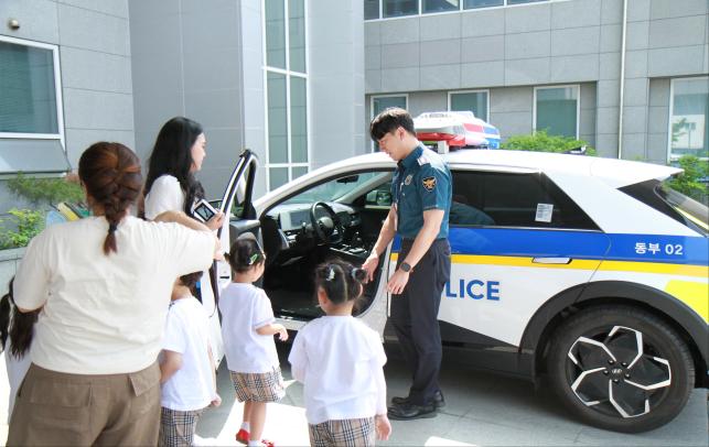 대전동부경찰서는 지난 24일 경찰서를 방문한 새봄 유치원 원생 15명에게 경찰 직무체험 활동의 기회를 제공했다. 이날 경찰서를 찾은 어린이들은 112치안종합상황실 등을 방문하여 경찰관이 어떤 일들을 하는지 직접 보고 설명을 들어보는 등의 체험활동을 진행했다. 이어서 교통경찰관이 운행하는 순찰차에 아이들을 직접 태워 순찰차 내부를 구경하고 탑승해보는 시간도 마련하여 어린이들의 큰 호응을 얻었다. 한편 대전동부경찰서는 평소 동구 지역 유치원과 어린이집 방문 및 지역축제 부스 운영을 병행하며 18세 미만 아동 등을 대상으로 지문, 사진, 보호자 인적사항을 사전에 등록하여 실종 시 신속하게 발견할 수 있도록 돕는 '지문 등 사전등록제도' 활성화에도 최선을 다하고 있다. /이승현 기자