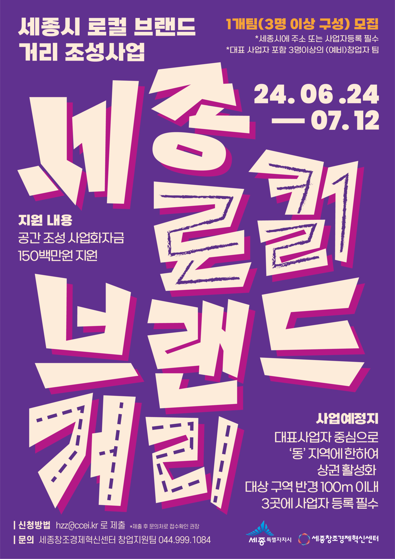 세종시가 세종을 대표하는 로컬브랜드 거리 조성을 주도할 참여팀을 모집한다. 이 사업은 민간이 주도하는 로컬브랜드 거리 조성을 통해 지역 상권 활성화와 상가 공실 해결 기반을 구축하는 것을 골자로 한다. 시는 로컬브랜드 거리조성사업에 최종 1개 팀을 선발해 공간 조성 사업화 자금으로 1억 5000만 원을 지원할 계획이다. 또 사업장 공간 조성, 브랜드 개발지원, 사업장 인지도 제고를 위한 행사개최 등을 적극적으로 지원할 계획이다. 참여 자격은 대표 사업자를 포함해 3명 이상의 (예비)창업자로 구성된 팀이다. 대표 사업자는 공고일 기준 세종시에 사업장을 둔 소상공인·소기업이거나 6개월 이상 세종시에 주민등록을 둔 예비창업자여야한다. 접수기간은 24일부터 내달 12일 오후 12시까지다. 이승원 경제부시장은 "이번 사업을 통해 세종시만의 특색 있는 로컬브랜드 거리가 조성돼 지역 상권에 활력을 불어넣을 것으로 기대한다"며 "지역 가치를 활용한 창업자들의 많은 관심과 참여를 바란다"고 말했다. 사업 신청 서류와 공고문 등 자세한 사항은 세종시청 및 세종창조경제혁신센터 홈페이지 공지사항 또는 세종창조경제혁신센터 창업지원팀으로 하면 된다. /배진우 기자