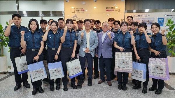 세종시 자치경찰위원회가 지난 17일 민생 치안 최일선 현장에 투입될 제314기 신임 경찰관 18명과 소통 간담회를 열었다. 이날 자치경찰위원회는 따뜻한 환영 인사와 함께 부서 적응을 돕는 물품이 담긴 초심 꾸러미를 만들어 선물하며 자치경찰위원회를 홍보하고 경찰관으로서 자긍심을 높일 수 있도록 했다. 제314기 신임 경찰관들은 오는 9월 20일까지 약 10주간 세종경찰청, 각 경찰서에서 교육 및 지역관서 현장실습을 받고 9월 30일 일선에 배치될 예정이다. 남택화 자치경찰위원장은"경찰관으로 임용된 것을 축하하고 실습 기간 중앙경찰학교에서 배운 이론을 세종 지역 특색에 맞게 활용해 안전한 세종이 될 수 있도록 노력해 주기 바란다"고 당부했다./ 배진우 기자 배진우 기자 gogk88@sejongilbo.co.kr 다른기사 보기 저작권자 © 세종일보 무단전재 및 재배포 금지 당신만 안 본 뉴스 한화 불꽃축제 30일 개최…대전시, 방문객 안전 관리 강화 주민이 채우는 폐교, 지역이 키우는 공간으로 만든다 [사설] 일할 세대가 떠난다 ‘APEC 2025 미래들의 수다’, 청년 시선으로 본 인구위기 어린이 환경교육, 뮤지컬로 배우는 탄소중립 외로움 대신 연결로… 청년 위한 온라인 상담 시범 운영 반복되는 SPC 사고… 노동부 "노동강도·건강영향 재진단 필요" 한화 불꽃축제 30일 개최…대전시, 방문객 안전 관리 강화 개의 댓글 회원로그인 작성자 비밀번호 댓글 내용입력 댓글 정렬 최신순 추천순 답글순 BEST댓글 BEST 댓글 답글과 추천수를 합산하여 자동으로 노출됩니다. 닫기 더보기 댓글삭제 삭제한 댓글은 다시 복구할 수 없습니다. 그래도 삭제하시겠습니까? 비밀번호 닫기 댓글수정 댓글 수정은 작성 후 1분내에만 가능합니다. 본문 / 400 비밀번호 닫기 내 댓글 모음 닫기 주요기사